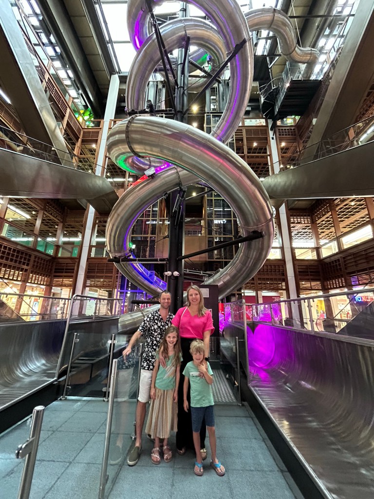 Eerst een bezoekje aan het World Trade Center waar we de kids ook even laten genieten hebben van een 68m hoge glijbaan!