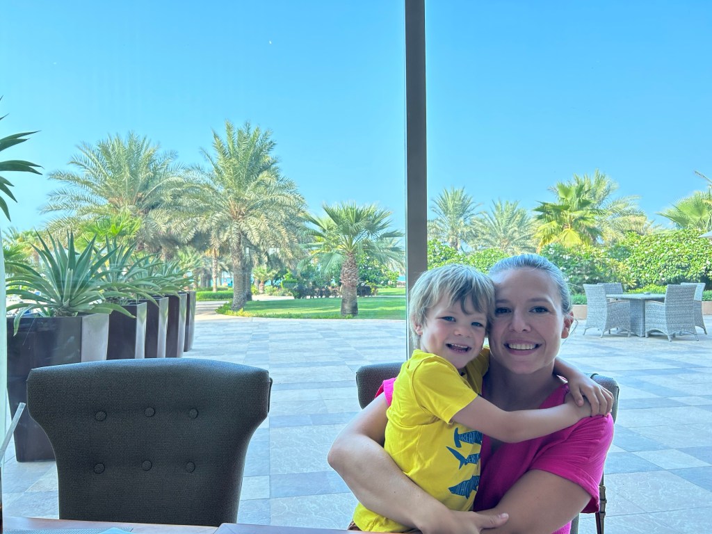 Genoeg over eten geschreven, we zijn ook eens gaan piepen naar het hotel vlakbij het strand, waar we van de faciliteiten mogen gebruik maken. Het was lekker warm dus een drankje ging er wel in. Tijd ook voor een lieve mama-zoon foto 🤩