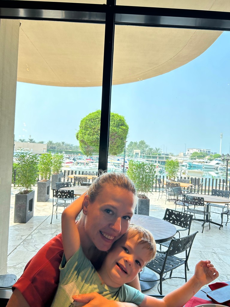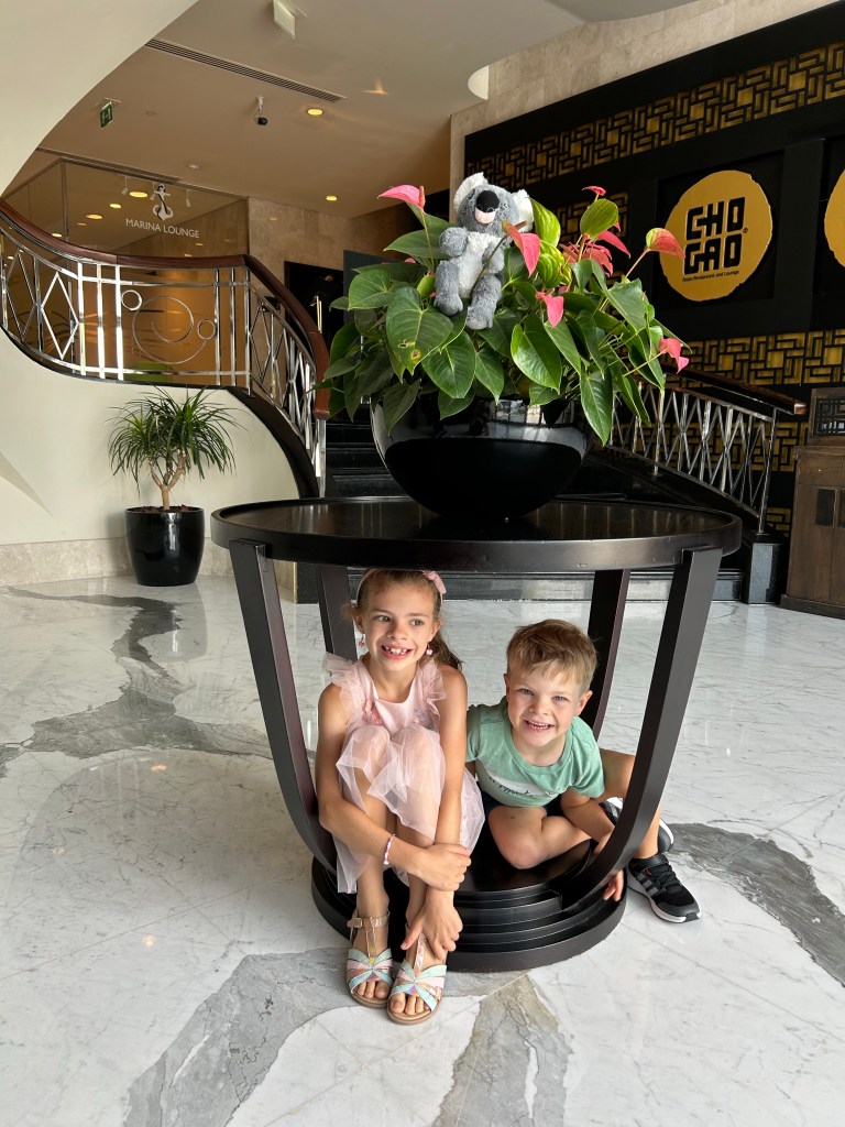 In het hotel hadden we tijdens het ontbijt een mooi zicht op een klein jachthaventje. De kids speelde erna even verstoppertje!