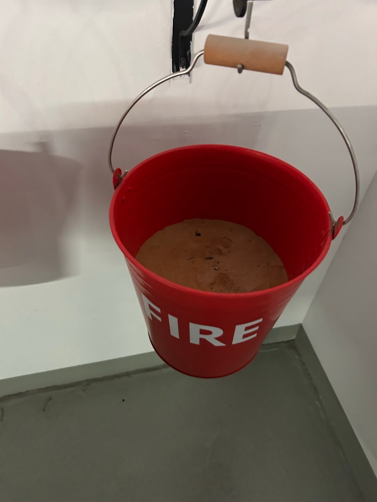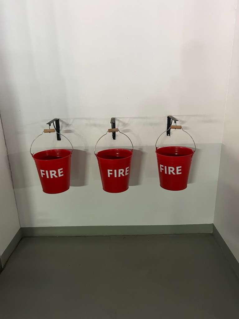 Blijkbaar emmertjes met zand als er een brandje start. Dit heb ik in België nog nergens gezien ☺️