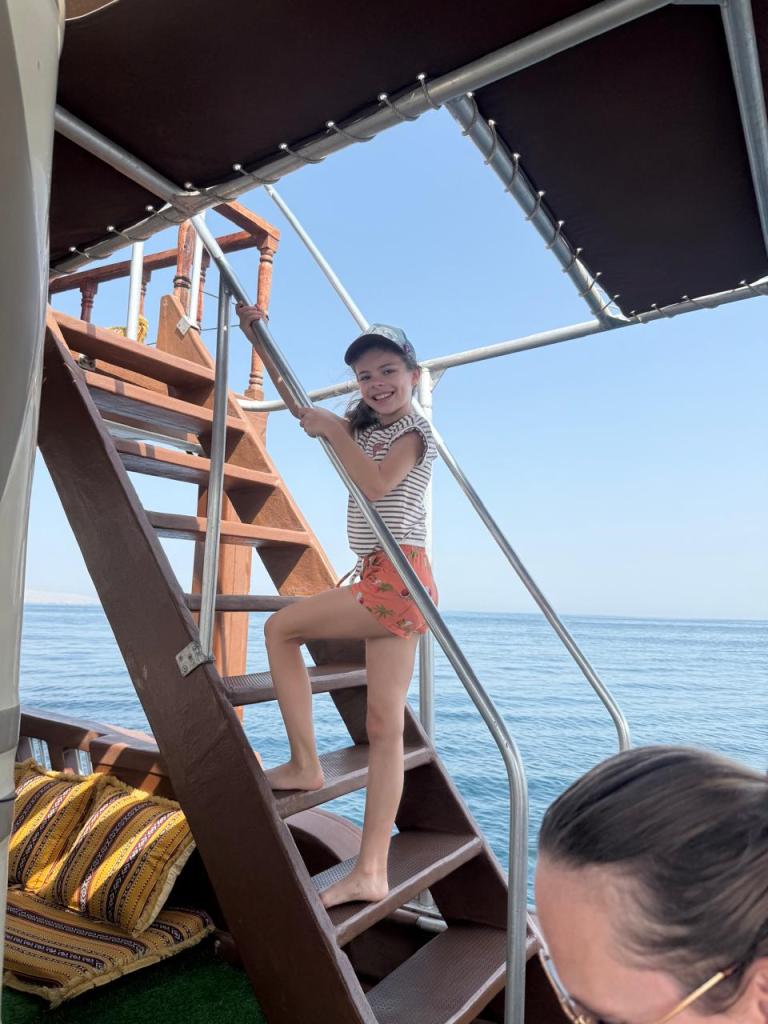Ook gingen we met een Dhow op zee om dolfijnen te spotten, te snorkelen en een kleine hike te doen. Nadien bezochten we nog een ‘farm’ van één van de Locals om te verkoelen in het zwembadje en te proeven van vers gemolken geitenmelk. Het was een hele leuke ervaring.