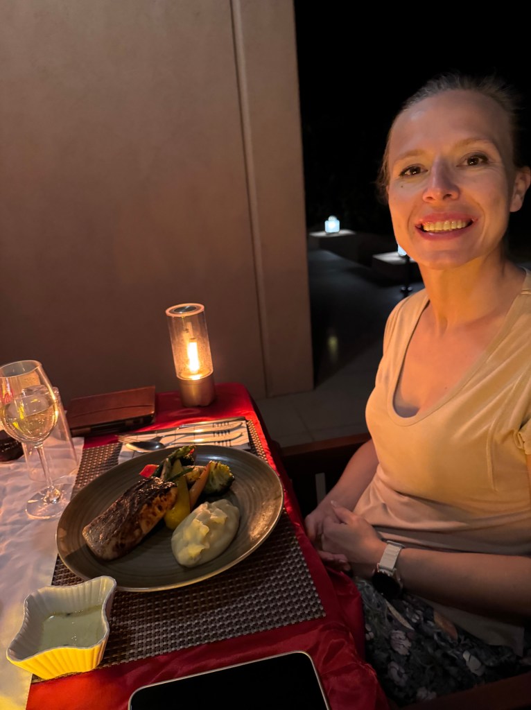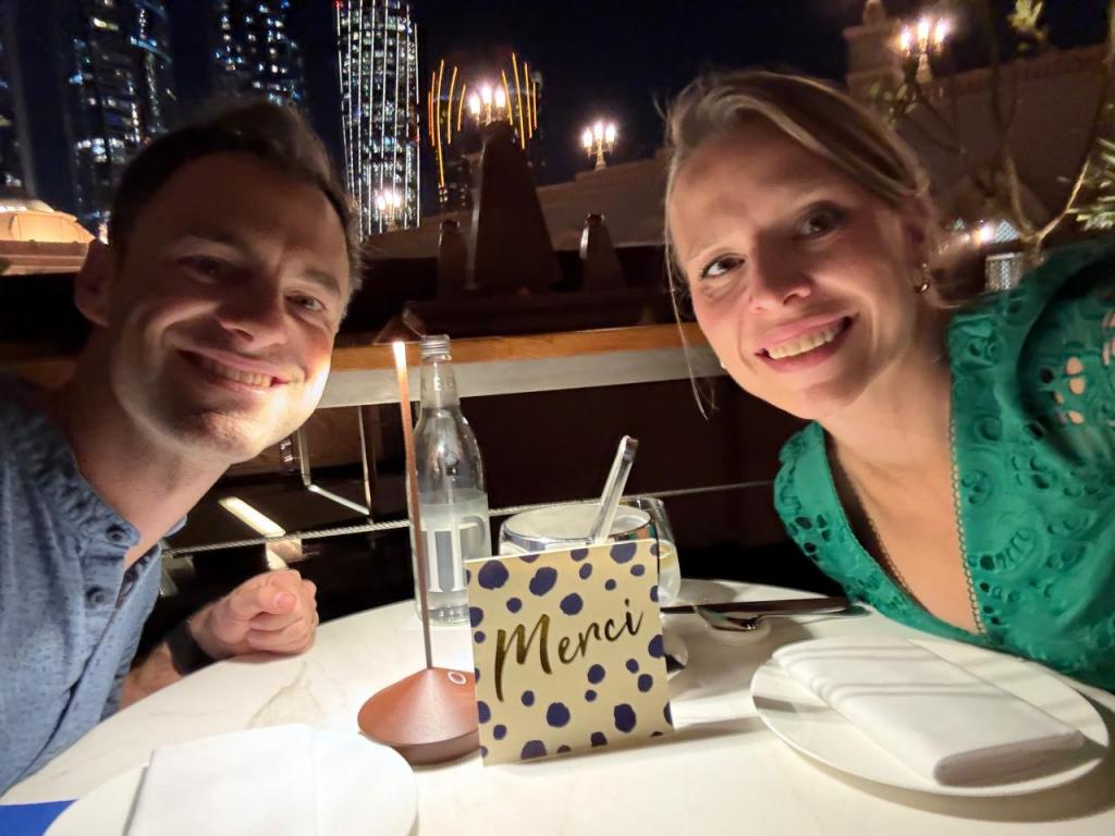 Vorig jaar kregen we van Kim (Ann’s zussie) een cadeaubon om eens te gaan eten bij Hakkasan. Dit is een restaurant, gelegen in het Emirates Palace (lees: vrée sjiek) met 1 Michelinster. Samen dus genoten van een heerlijk dinner op een mooie locatie.