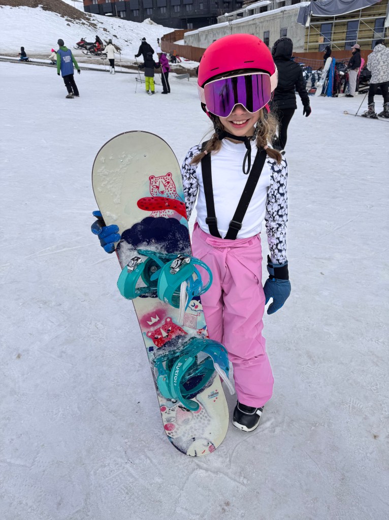 Emma wou ook eens proberen snowboarden dus kreeg ze 2u les.