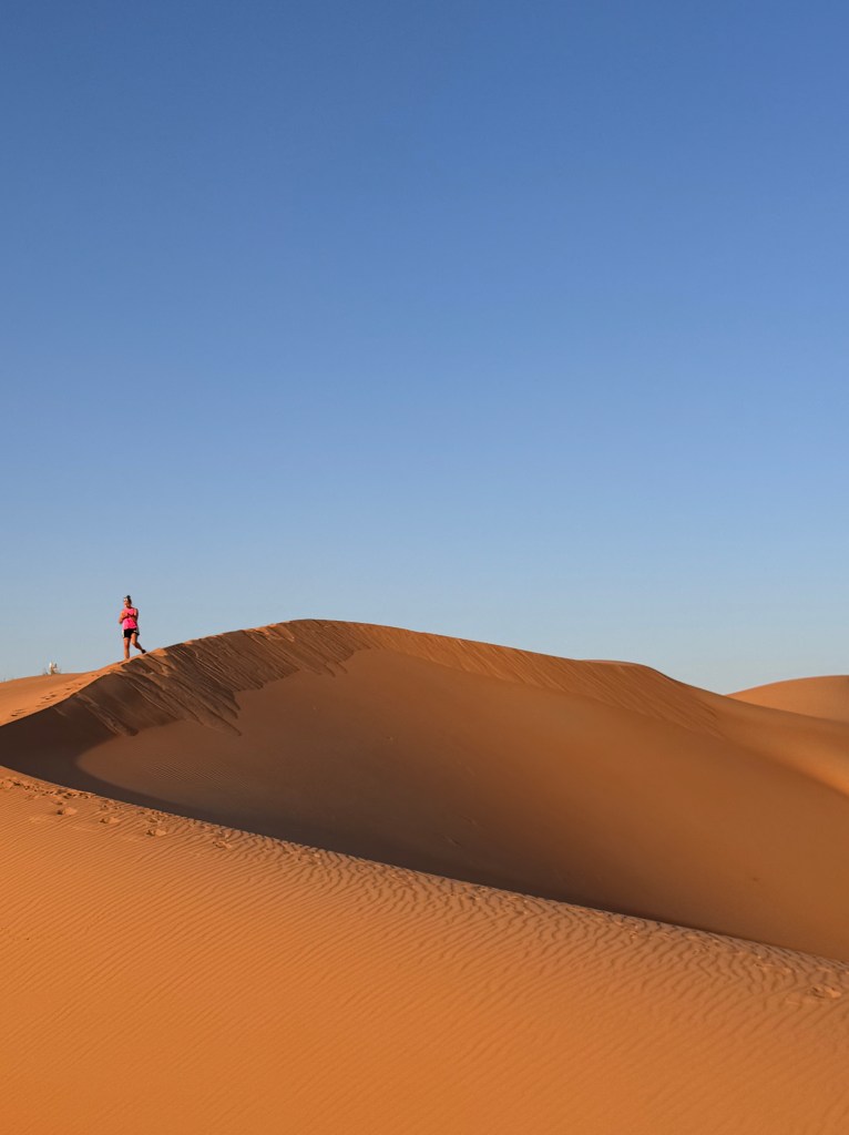 ’s Avonds gingen we op avontuur in de woestijn. Op eigen houtje, zonder plan, een wandeling maken op de duinen om een prachtig plekje te vinden voor de magische zonsondergang. Ook dit was een superleuke ervaring maar bergop een duin omhoog is zeker niet te onderschatten.