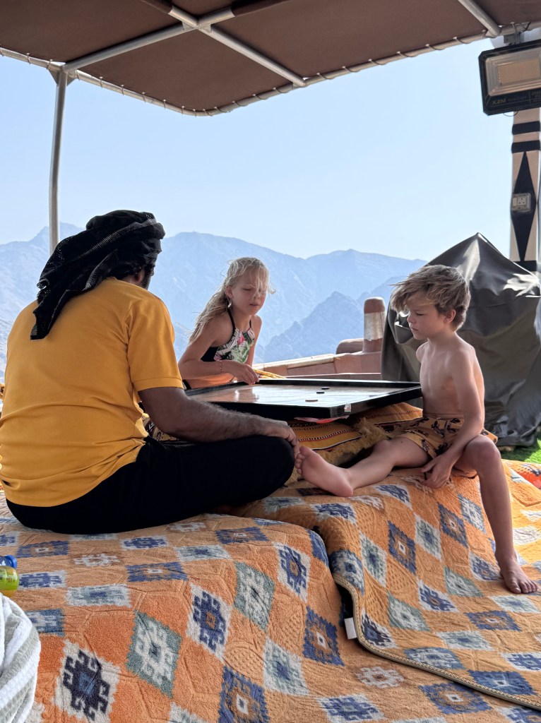 Ook speelden we Jackaroo… een typisch bordspel van de UAE, dat erg lijkt op mens erger je niet, maar het moet gezegd zijn, de Jackaroo versie is vele leuker!